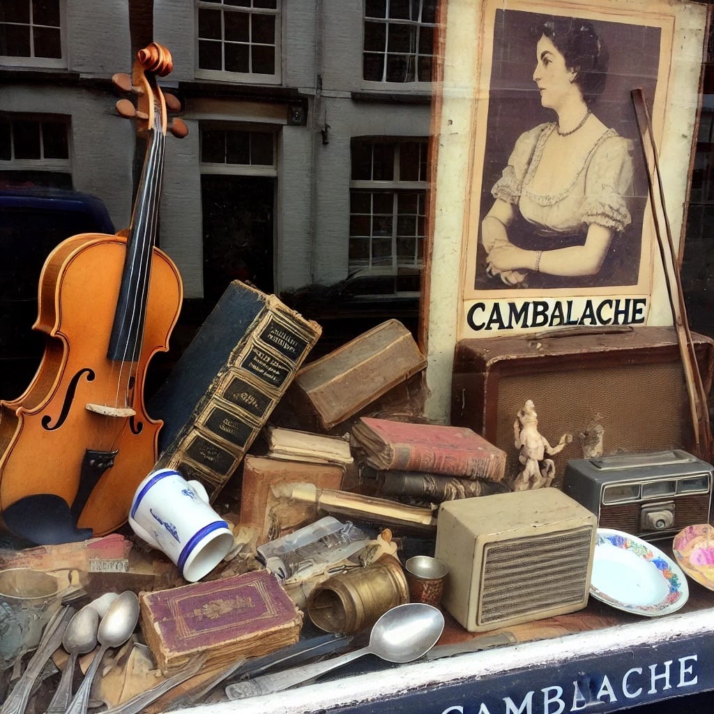 Ordet Cambalache betyr et sted hvor folk kjøper og selger brukte gjenstander, men det kan også referere til en situasjon eller et sted preget av uorden og støy. Jeg har valgt å oversette ordet som loppetorv.