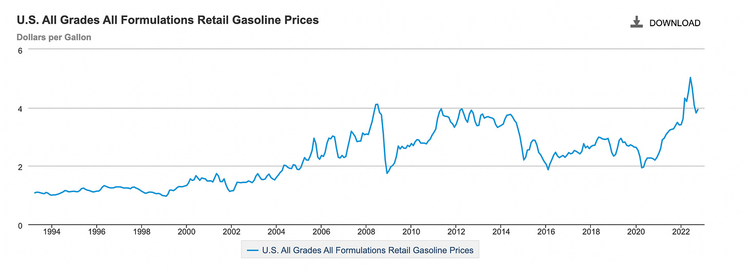 Kombinert med Ukraina krigen drev disse handlingene bensin prisene i sommer opp massivt over hvor de var ett år tidligere. Nå har de kommet ned noe, men er fortsatt opp 64% over hvor de var da Biden signerte sine direktiver. Det er ingen bagatell i et land hvor befolkningen i Heartland statene er fullstendig avhengige av kjøretøyer for både arbeid og dagligliv.