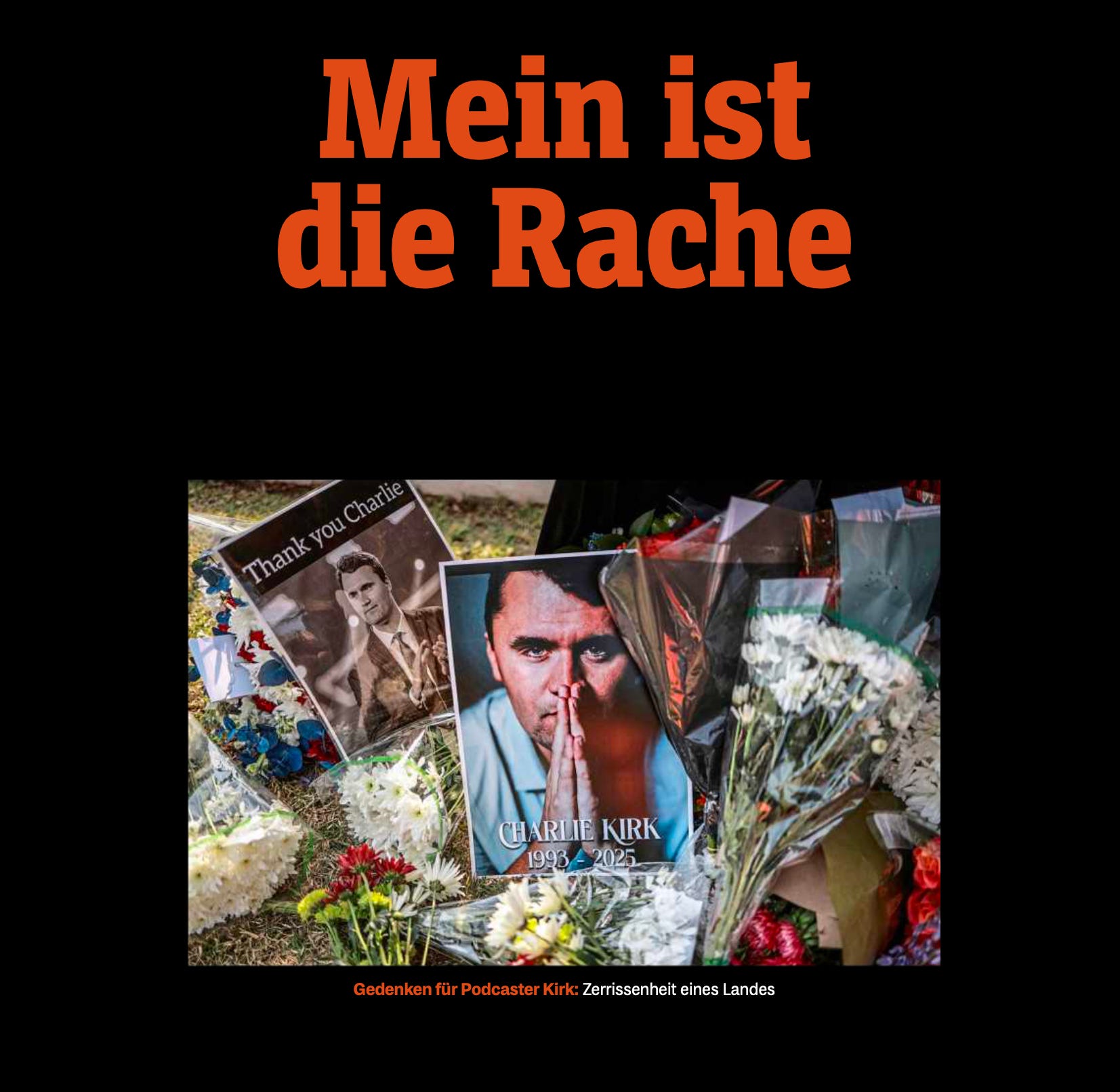 Minnestunden for Charlie ble holdt 21. september på State Street Stadium i Arizona, nær hjemmet han delte med sin hustru Erika. Blant de tilstedeværende var president Trump, i spissen for store deler av regjeringen, sammen med nærmere hundre tusen sørgende som fylte tribunene – og ytterligere 25–30 millioner som fulgte seremonien direkte på nettet. Attentatet har løftet Charlie til et ikon: mer mektig i døden enn han noen gang var i livet. Det samme gjelder for organisasjonen hans, Turning Point.