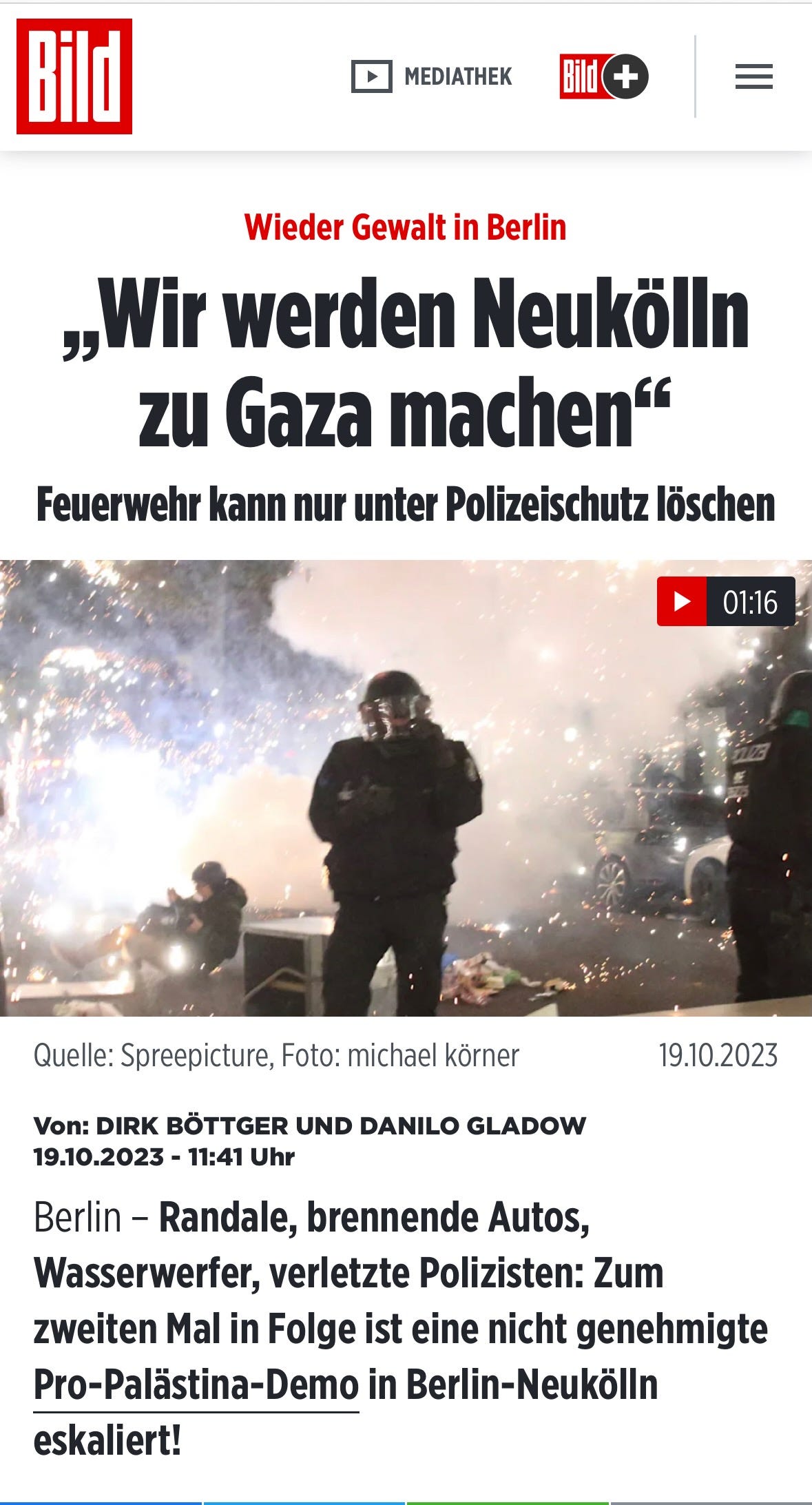 Dager senere opplever NeuKölln opptøyer omkring pro-Palestina demonstrasjoner. Magasinet Bild siterer en palestiner som sier “de ønsker å gjøre Neukölln til Gaza.”