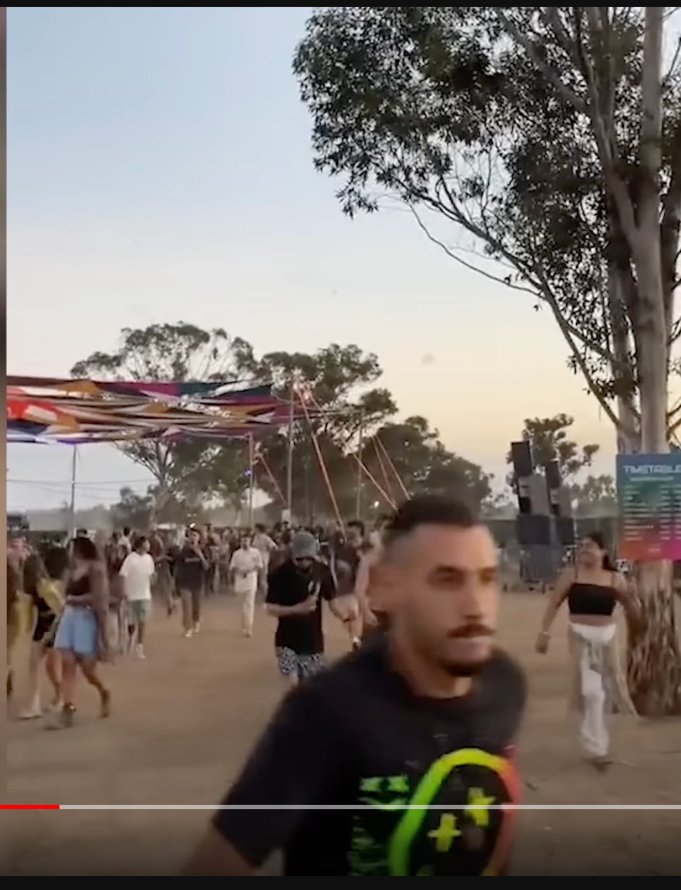 I åkrene mellom landsbyene og Gaza sperren, slumper de på en utendørs musikk konsert, en rave, hvor tusenvis av unge, hippe mennesker har tilbrakt natten til lørdag dansende i sine trendy, technicolor t-skjorter, mavebluser og ponchoer. Det er verd en stopp i morgengryet - den ene zionist er like bra som den andre, og her finnes unge jenter. Vel 260 av de 2000 festivaldeltagerne drepes; jenter voldtas ved siden av likene til sine venner. De uskyldige ofrene ligger igjen i åkrene og langs veiene hvor de har forsøkt å flykte.