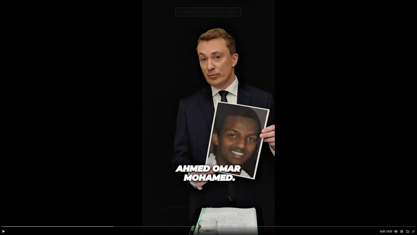 «Dette er Ahmed Omar Muhammed. For 15 år siden voldtok han en 10 år gammel jente, men han kom ikke ut av Danmark. Mette Frederiksen sørget for det. Nå er han siktet for drap på en 77 år gammel mann, og han kommer fortsatt ikke ut av Danmark. Det er forskjellen på om Mette Frederiksen har styr på det i politikken, eller meg og de borgerlige. Vi skal ha de kriminelle ut.»