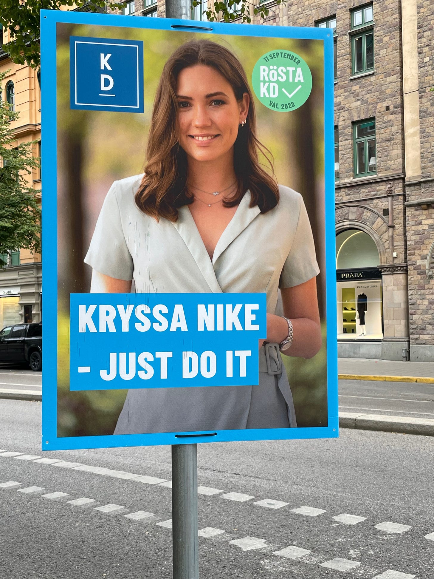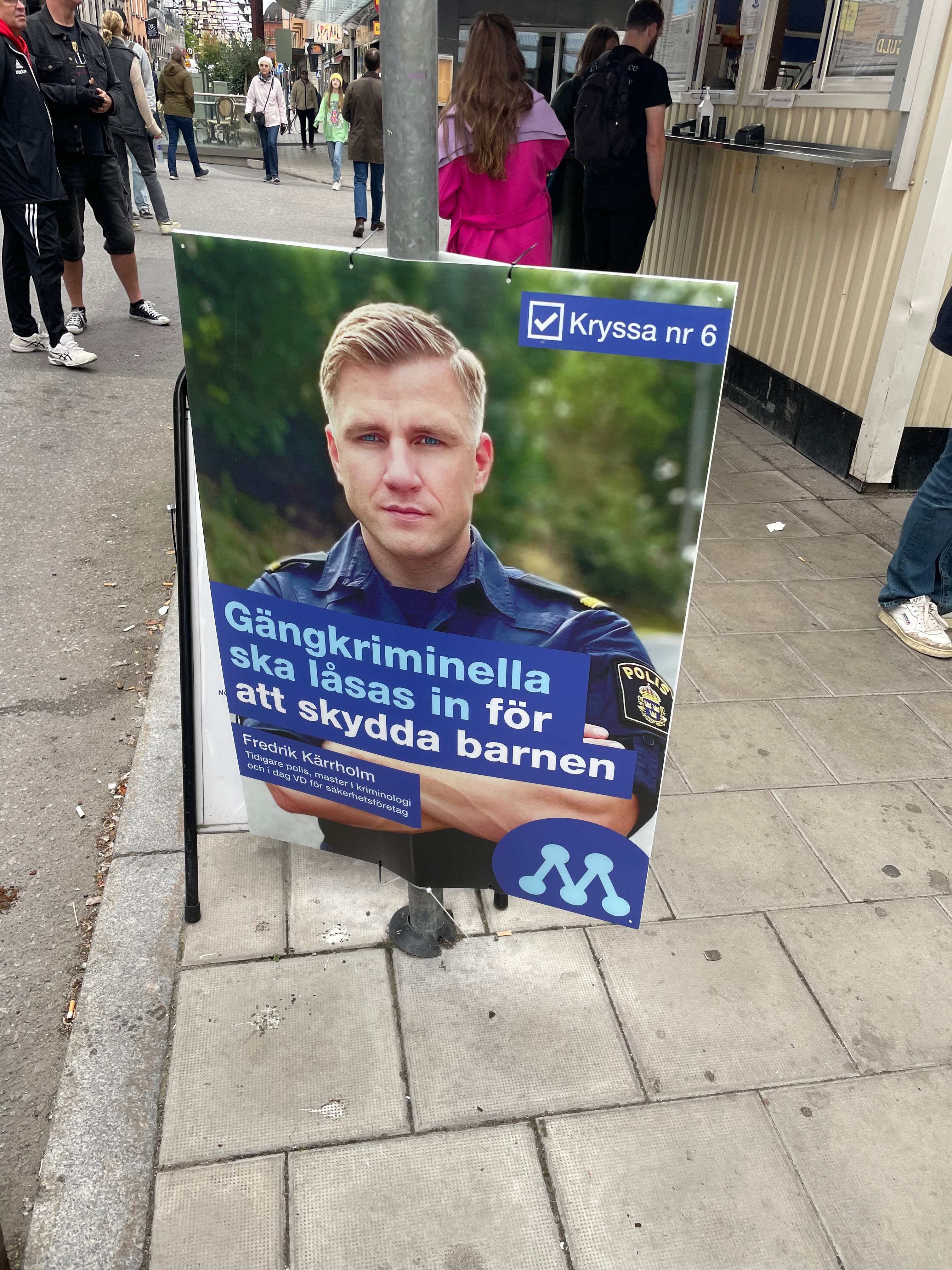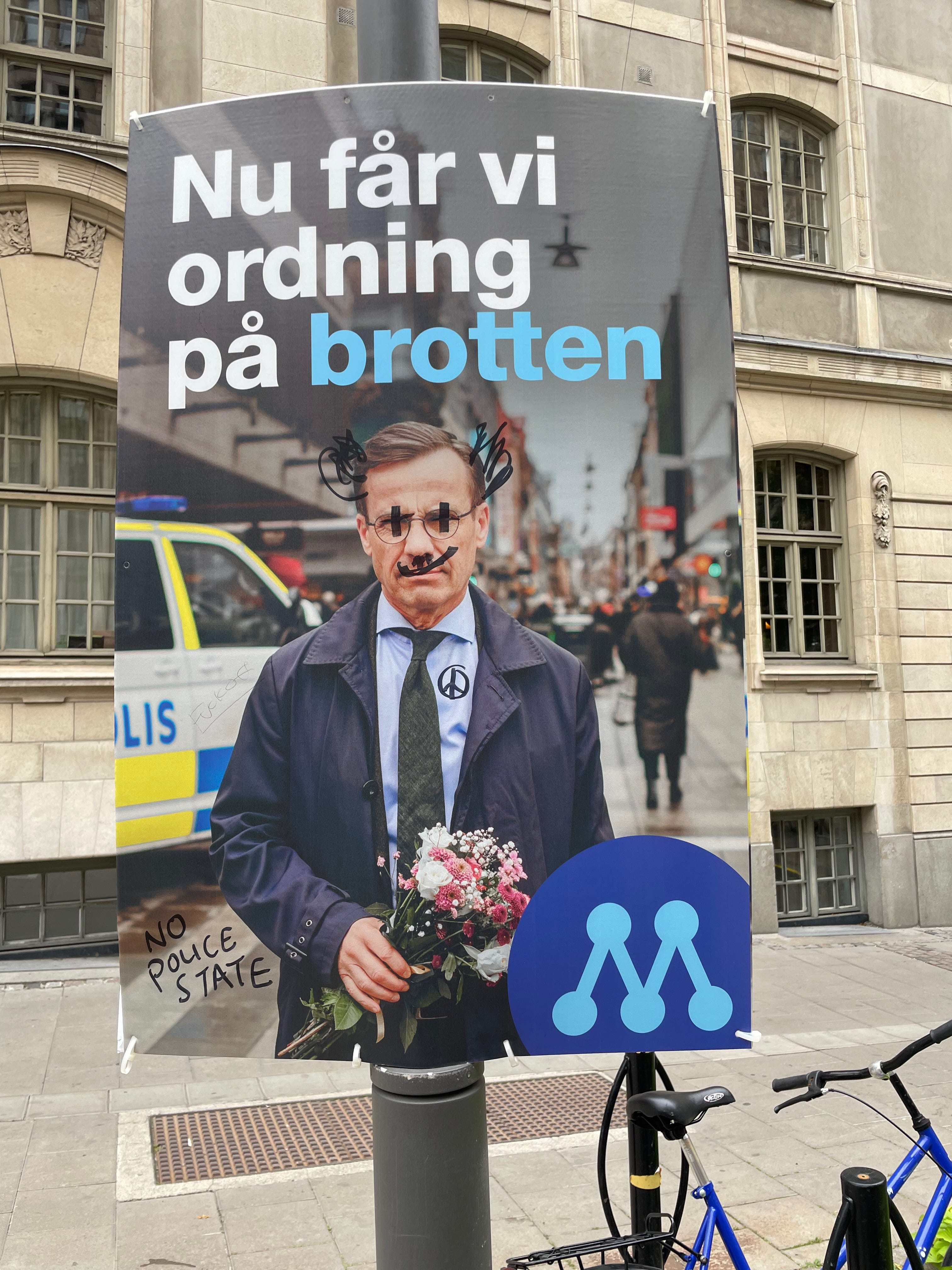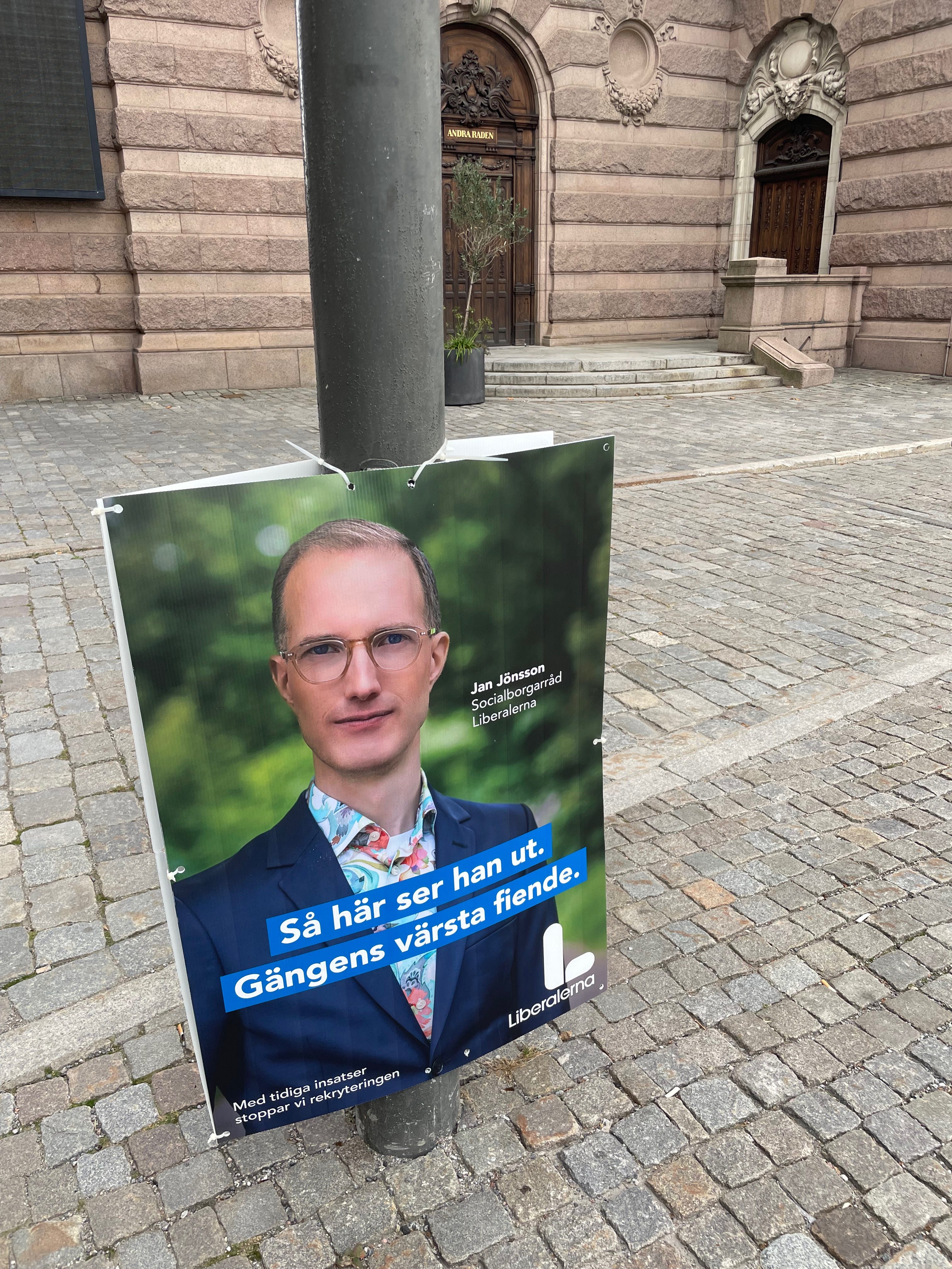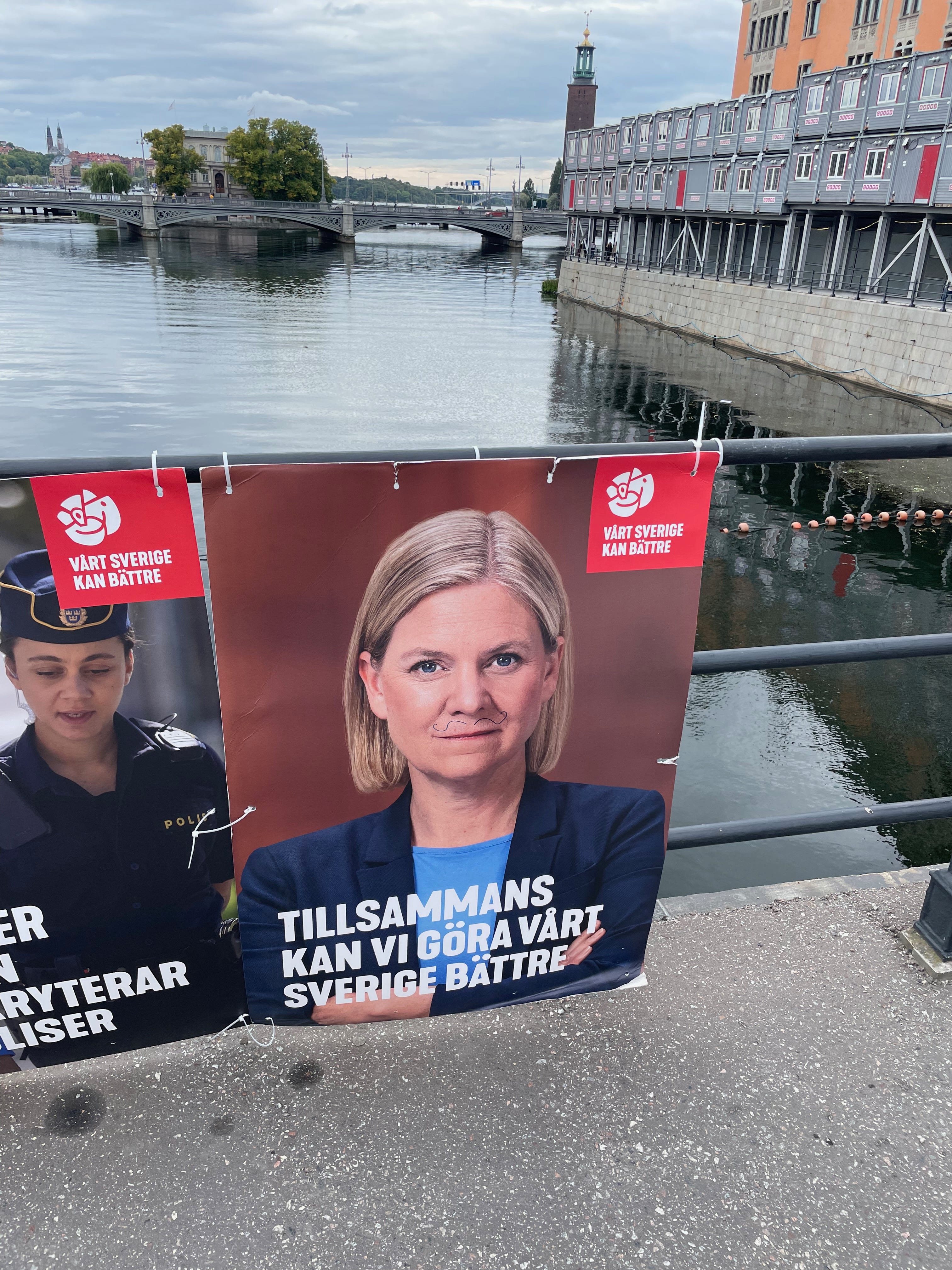 Lederen for opposisjonen, den milde Ulf Kristersson er djevelen selv, vist nok. Det er godt Sverige Demokratene så vidt jeg kunne se ikke har satt opp en eneste plakat i byen.