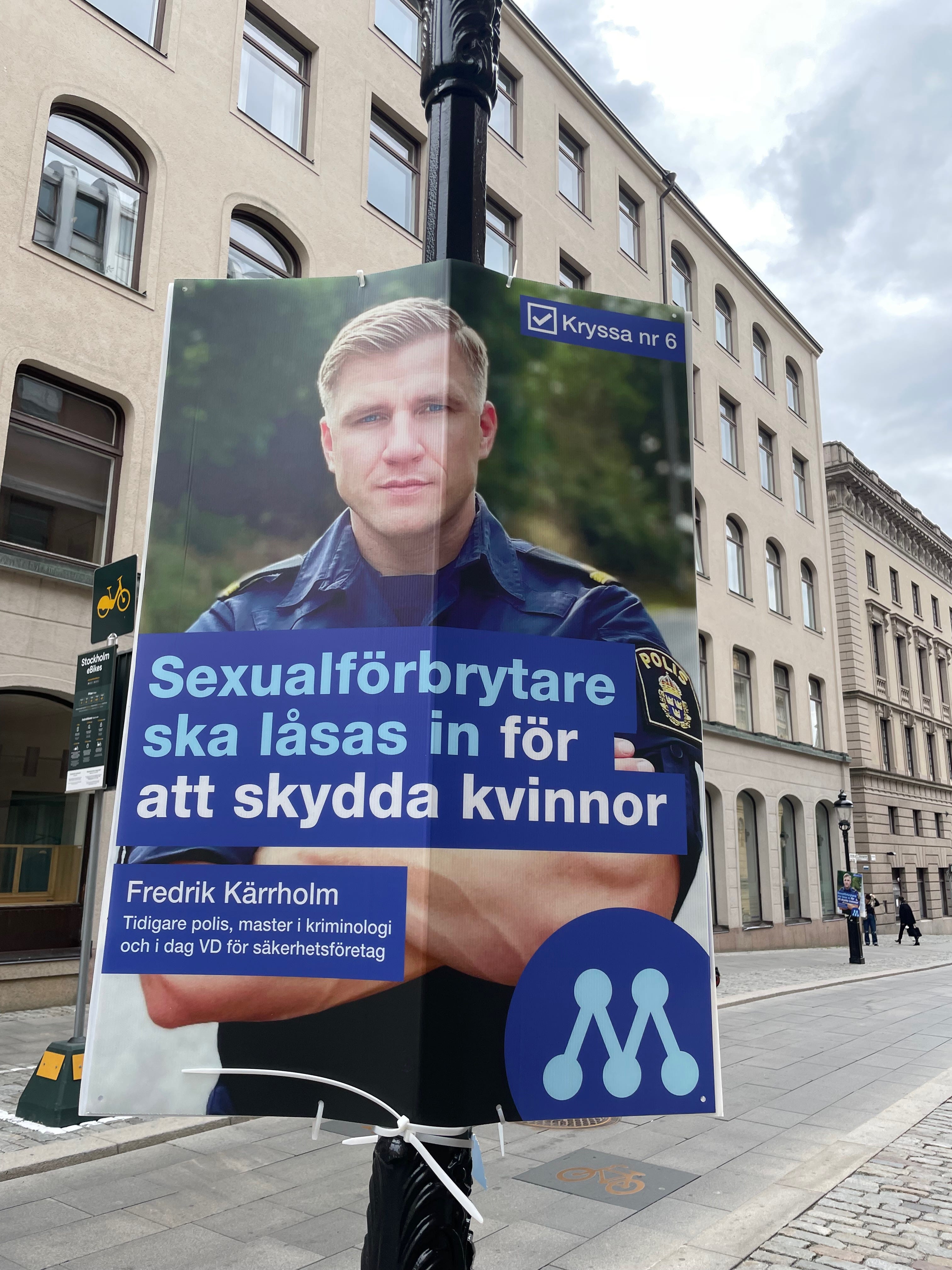 Denne karen fra Moderatarna har tatt et blad fra SDs valgprogramm.