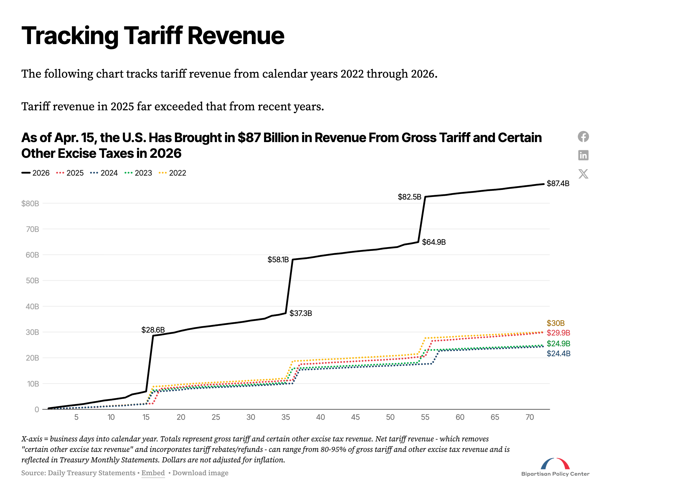 Naturligvis valgte de fleste å la årsdagen passere i stillhet. Det spiller ingen rolle for USAs finansdepartement. De robuste tolltallene taler for seg selv: Så langt i 2026, på bare tre måneder, har USA kassert inn 85 milliarder dollar i tollinntekter, mot om lag 24 milliarder i de foregående årene – en økning på 250 prosent.
